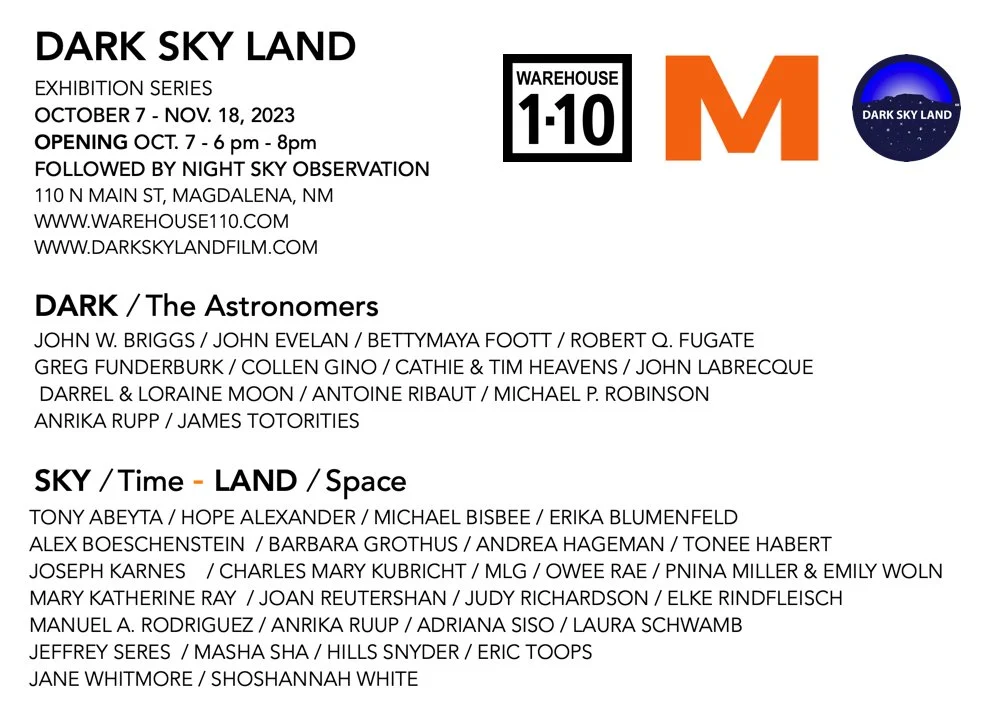 MAY 9 THROUGH OCTOBER 7 2023 | DARK SKY LAND EXHIBITION SERIES No 1. MAGDALENA, NM. WAREHOUSE 1-10 ART SPACE